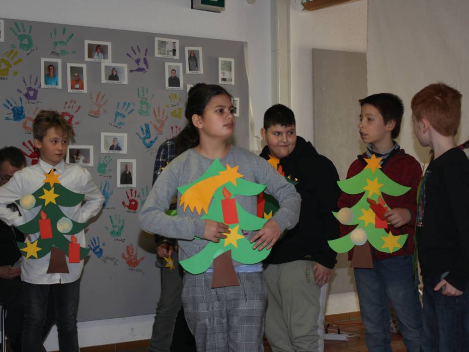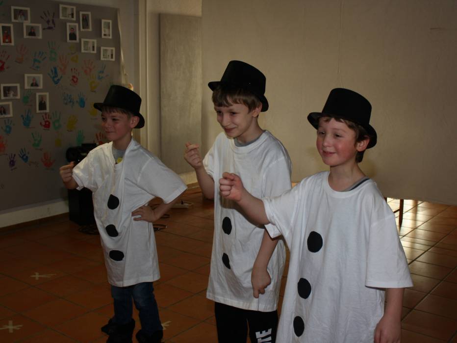 Im Anschluss führten einige Klassen noch Tänze und kleine Theaterstücke auf. Besonders mutig waren zwei Schüler aus der Unter-Mittelstufe. Ayden tug das Gedicht von den drei Spatzen vor und Jan-Lukas spielte Jingle-Bells auf seinem Kornett. Den Abschluss bildete die Tanz-AG mit einem morgendlichen Aufwärmtanz der Weihnachtsmänner und Weihnachtsfrauen.