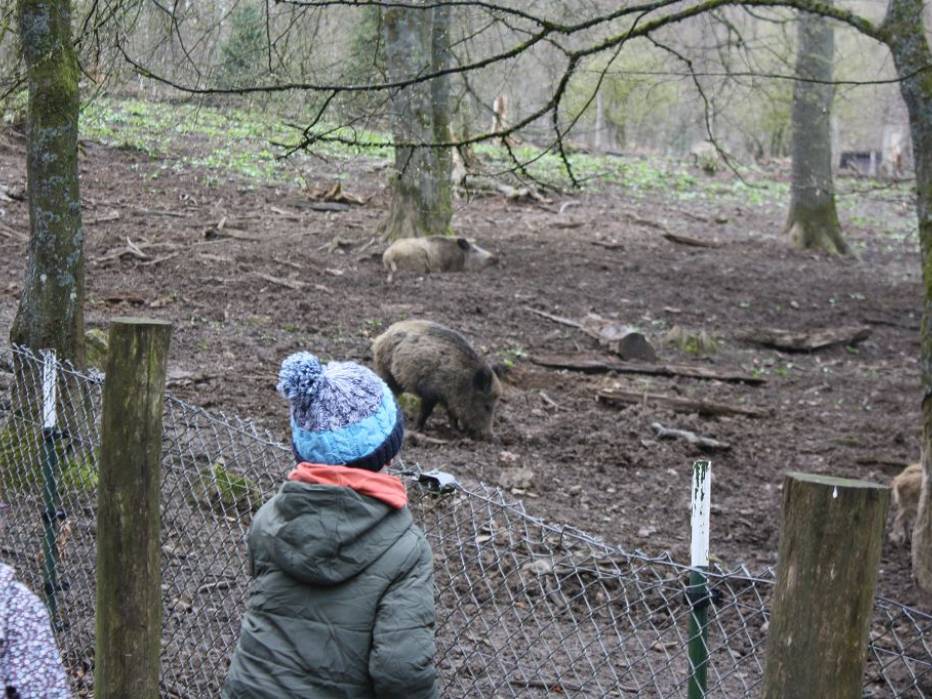 Zuletzt stand ein Besuch bei den lebhaften Wildschweinen an. Diese suchten intensiv im Boden nach Nahrung, verscheuchten dabei freche Krähen und gerieten teilweise auch untereinander in Streit um die besten Futterplätze.